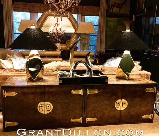 | “Revealing, sophisticated, provocative, contemplative, inspiring - all elements that a well thought out interior “The contrast of timeless, sleek, contemporary against distressed aged pieces creates a livable vintage chic and intensifies the impact of each individual piece.” “When there is too much harmony among pieces creating a cohesive style or “look” – the impact of each piece is minimized. Each piece is reliant on the other. I like pieces to be able to look just as fabulous alone.” “Your home should bring about feelings like a great movie that you want to see over and over again or a wonderful book that you can’t put down.” “My style is ever changing, and evolves depending upon what I come upon in my travels. I'm always in search of the most unique and one of a kind chic home furnishings” Grant Dillon |
